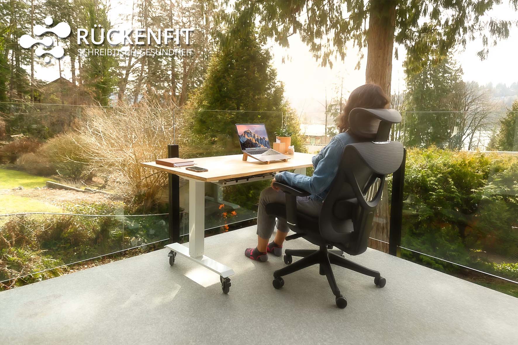 Der Laptop ist das Hauptproblem für Rückenschmerzen im Homeoffice. Liegt er auf dem Tisch, ist der Bildschirm zu tief — jeder Zentimeter Kopfbeugung entspricht ca. 2–3 kg zusätzlicher Last auf die Halswirbelsäule. Die Lösung ist einfach und günstig: